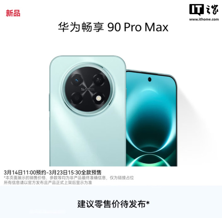 19、华为畅享90Plus、90ProMax手机开启新品预约,3月23日预售